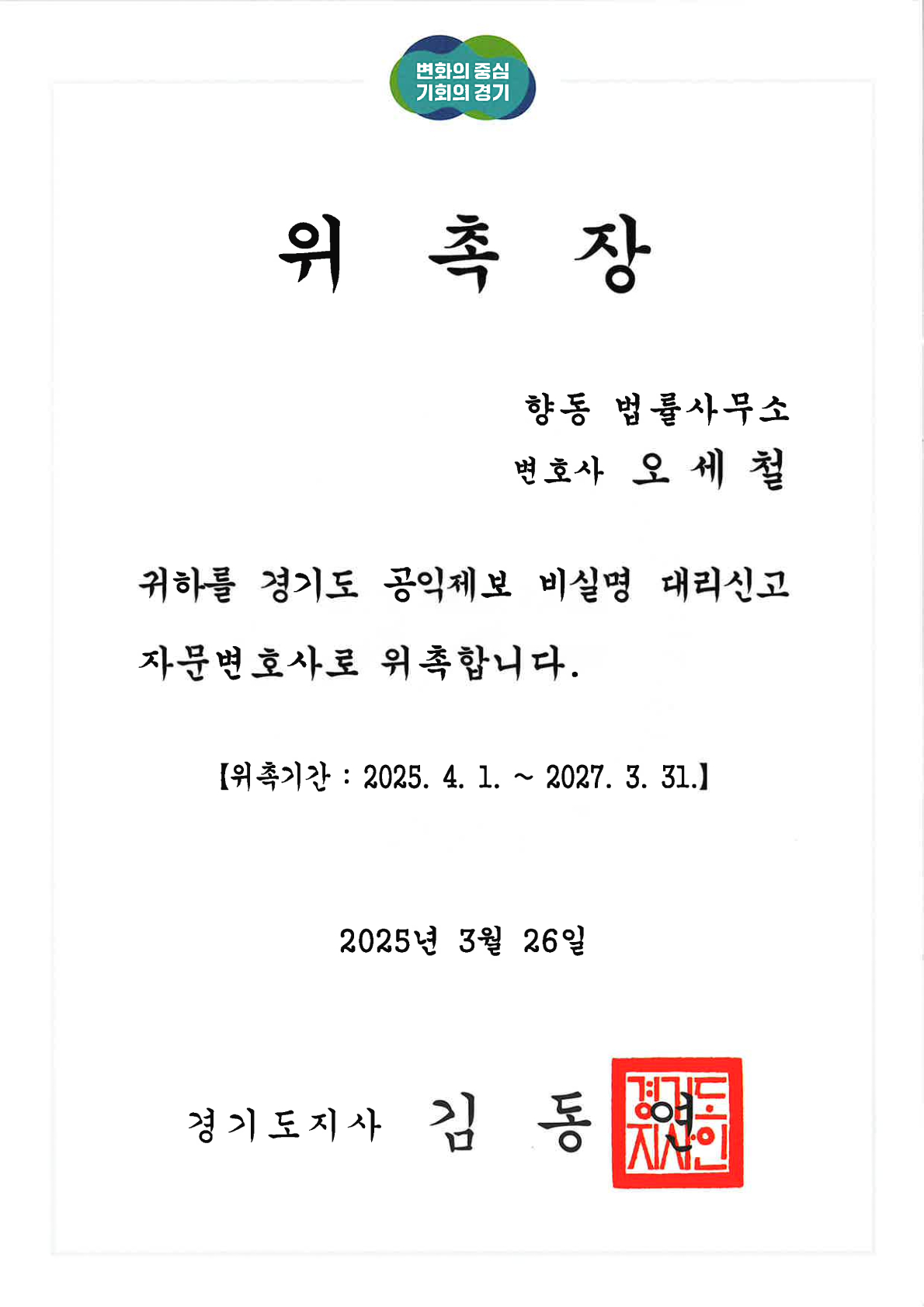 향동법률상담소는 경기도 비실명대리신고 자문변호사로 활동하며,