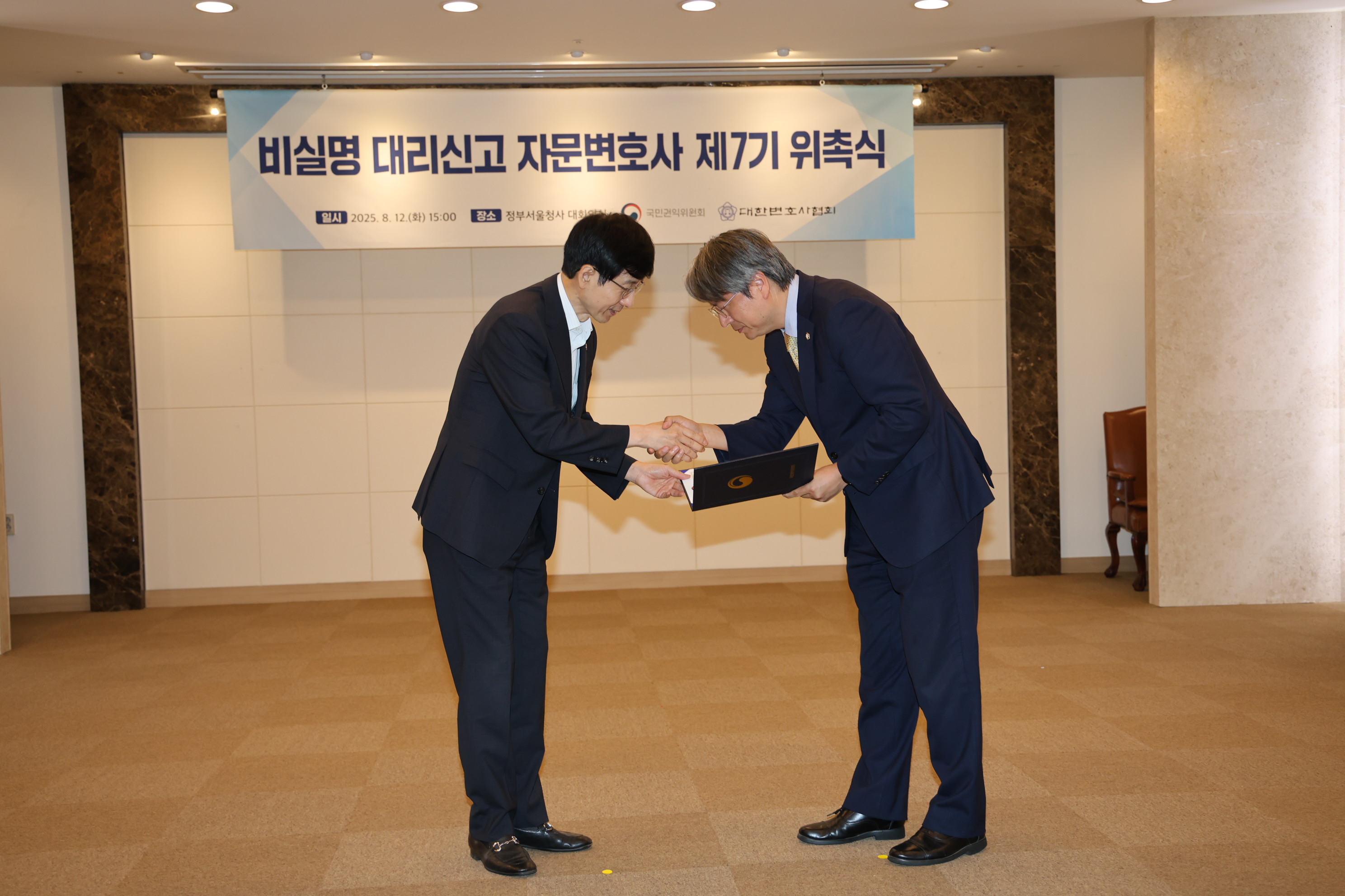 국민권익위원회 공익신고 비실명대리신고 제6기 자문변호사로 위촉받은