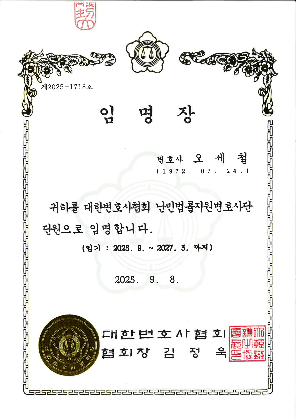 신청자의 기본적 권리를 보장하기 위해 전문 변호사들로 구성된 공익 변호사단입니다.